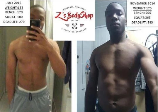 Powerlifting, fat loss and muscle gain client. Former HSU football player. Online and Private sessions.
